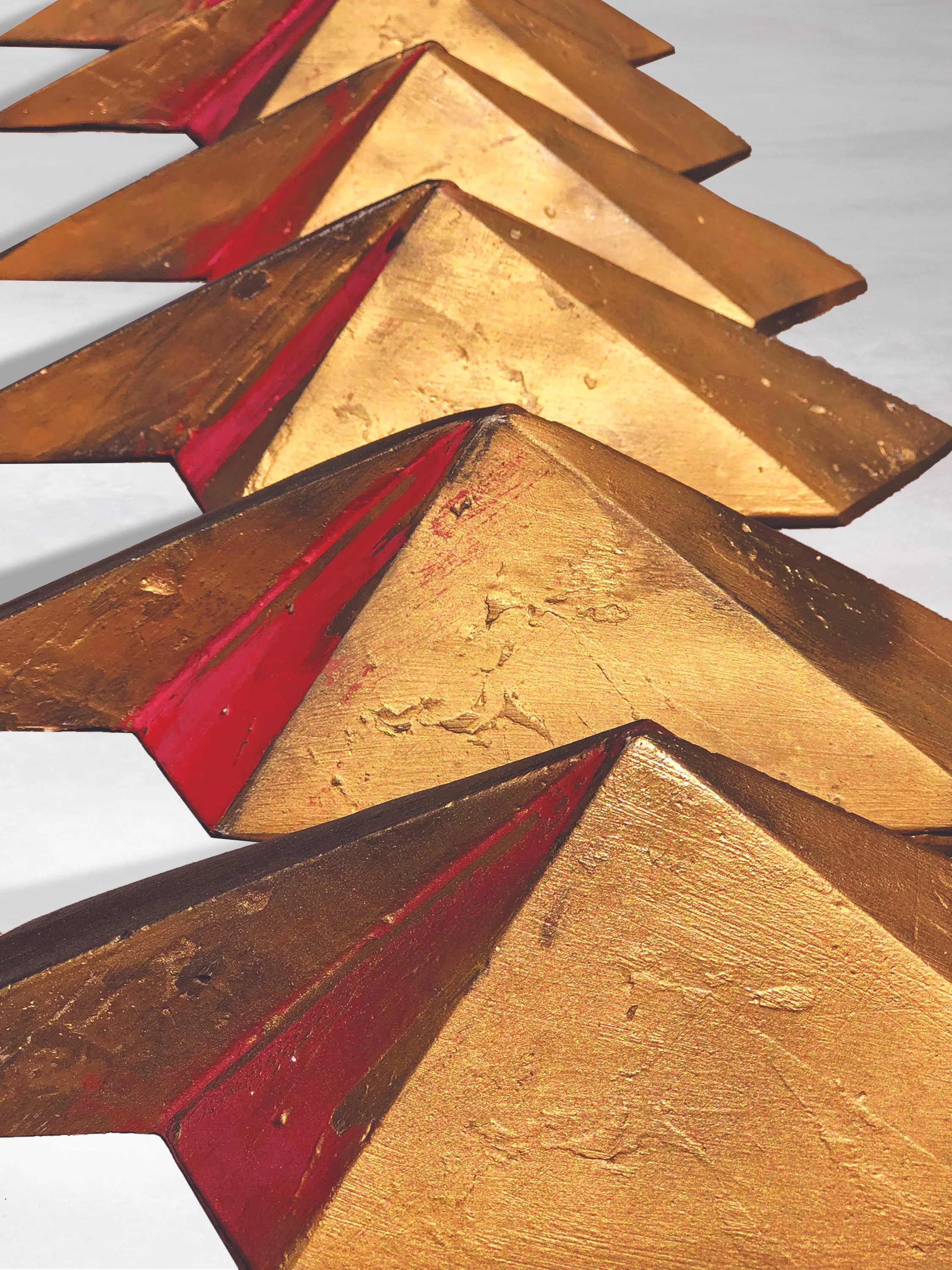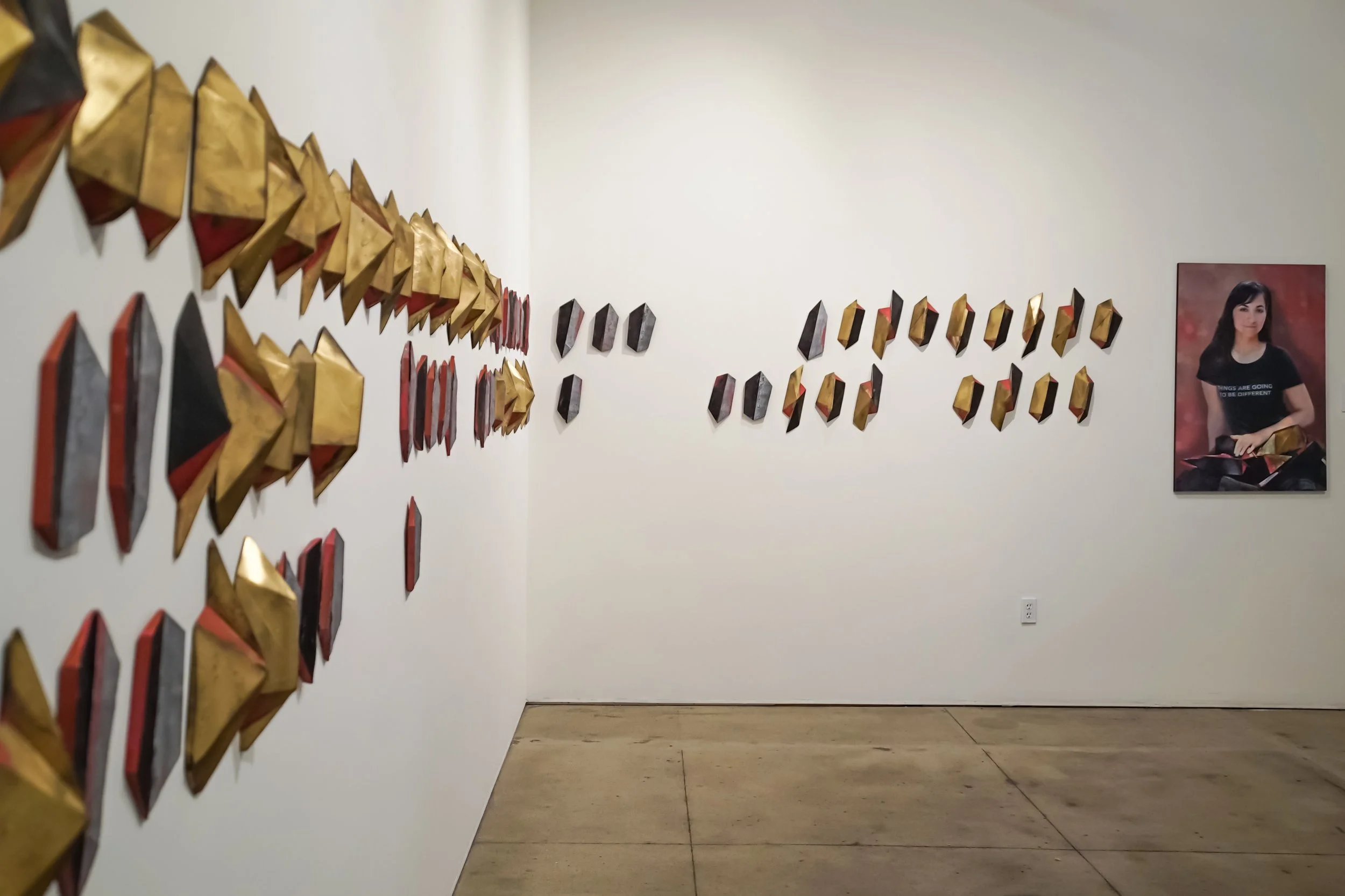 In the sculpture of her hours, heavy gold and black forms represent America’s paid labor hours, and less-weighty silver and black forms represent her unpaid labor hours. Spaces in the sequence represent waking hours when America was not working, either at her job, her nonprofit, or at home.