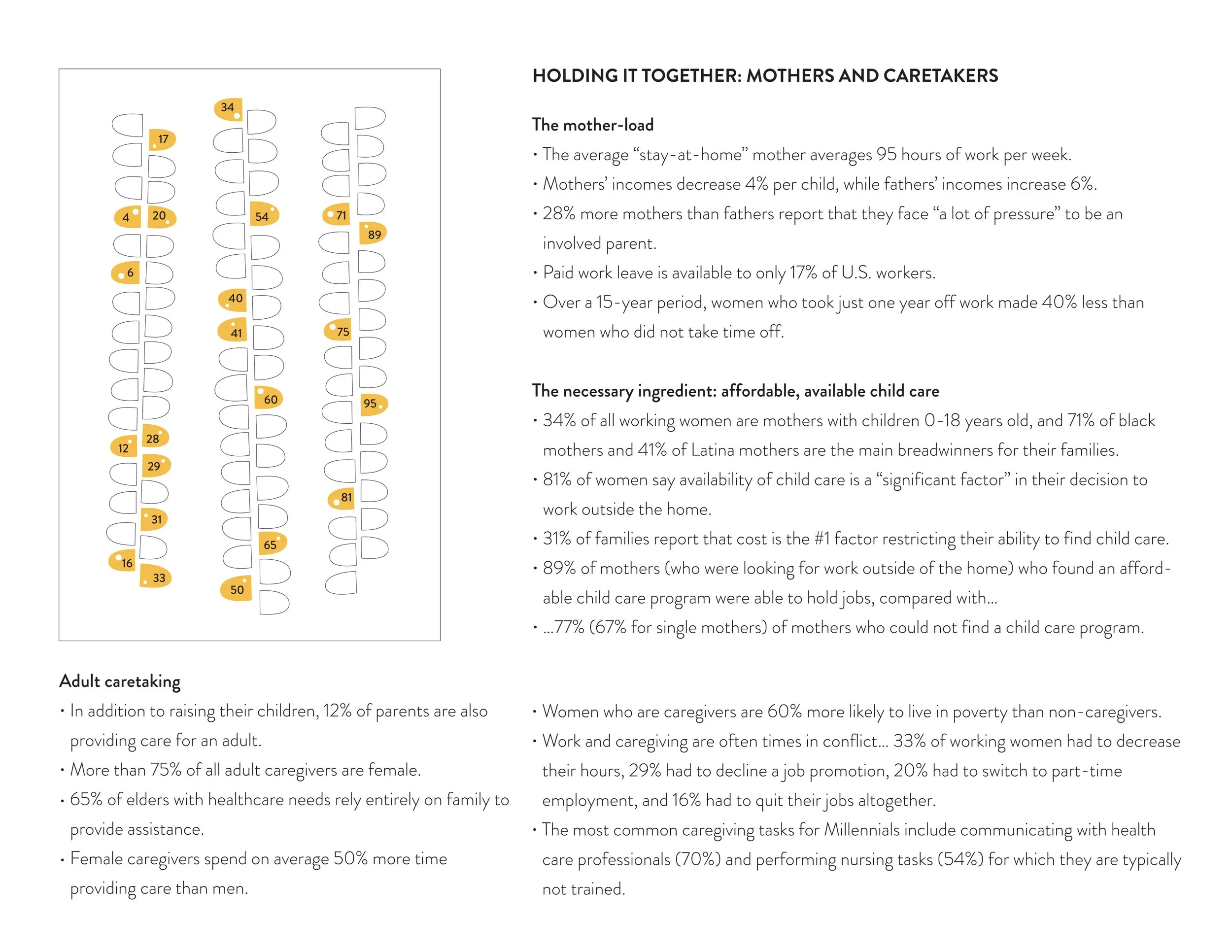 Whereas the sculpture/portrait pairs tell the deeply personal work stories of individual hard-working women, these works on panel and paper take a broader, numbers-based look at gendered work inequity.