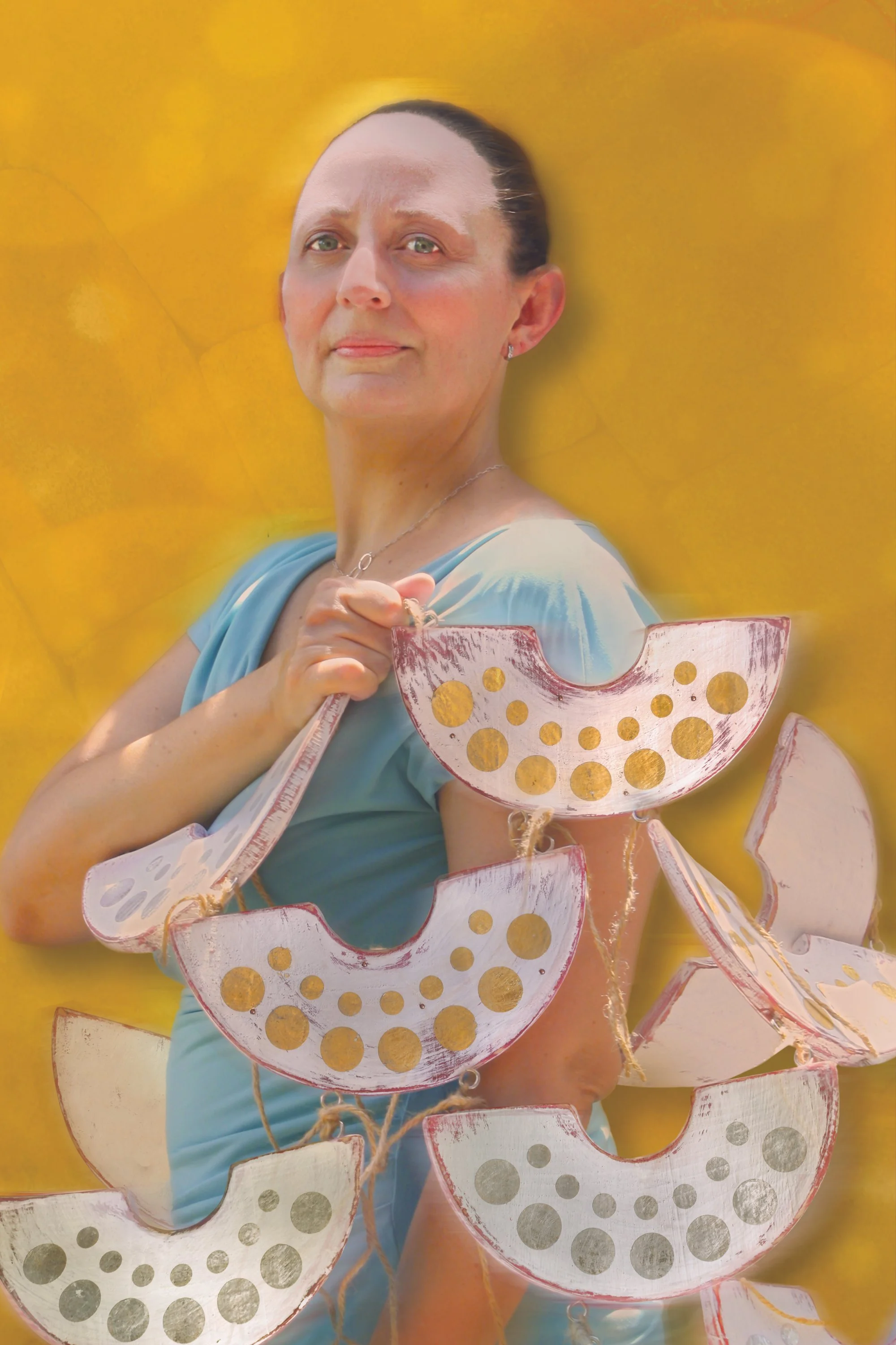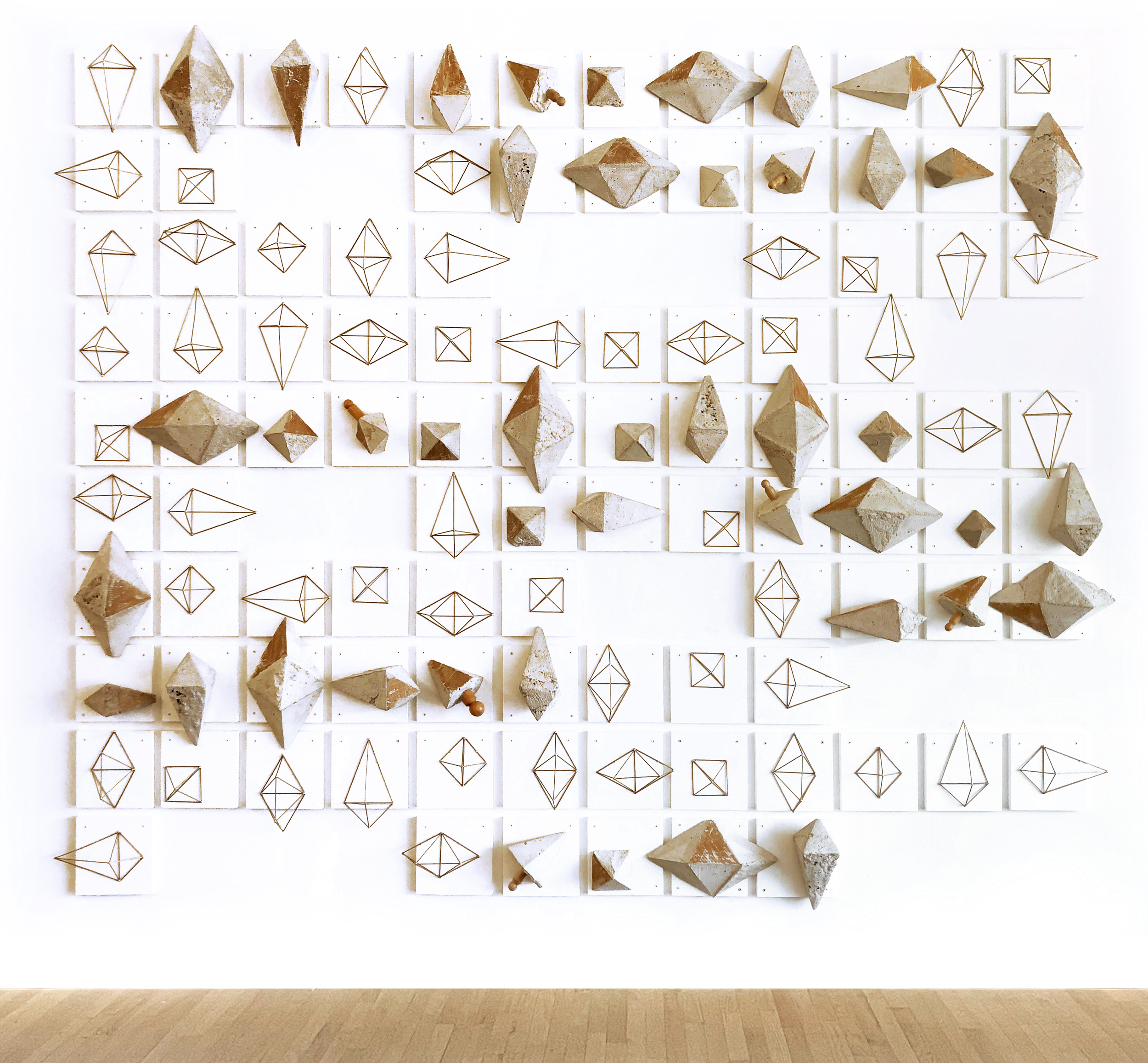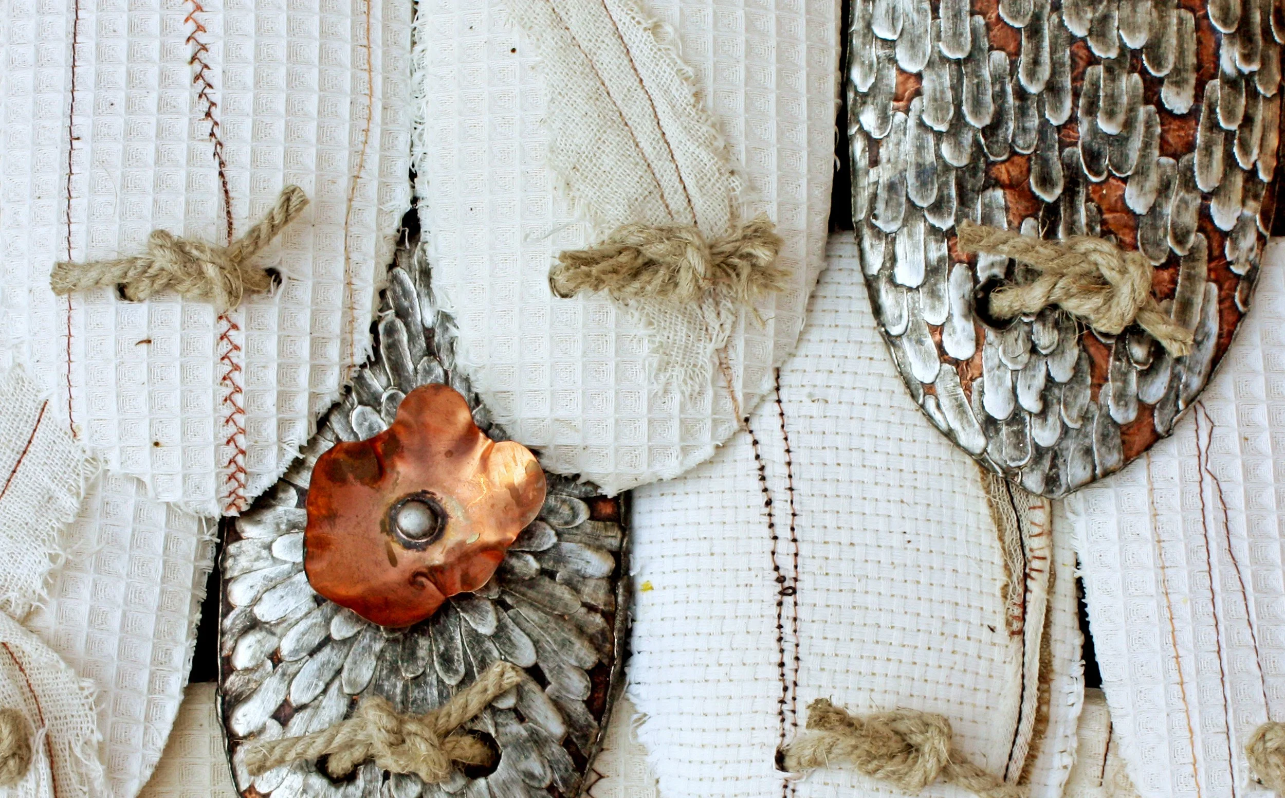 Work data, wood, gold and silver leaf, sisal, acrylic