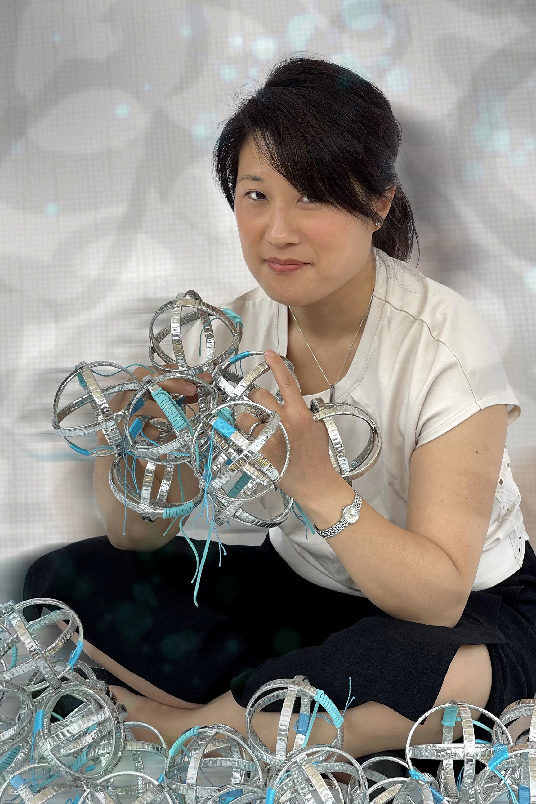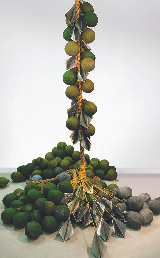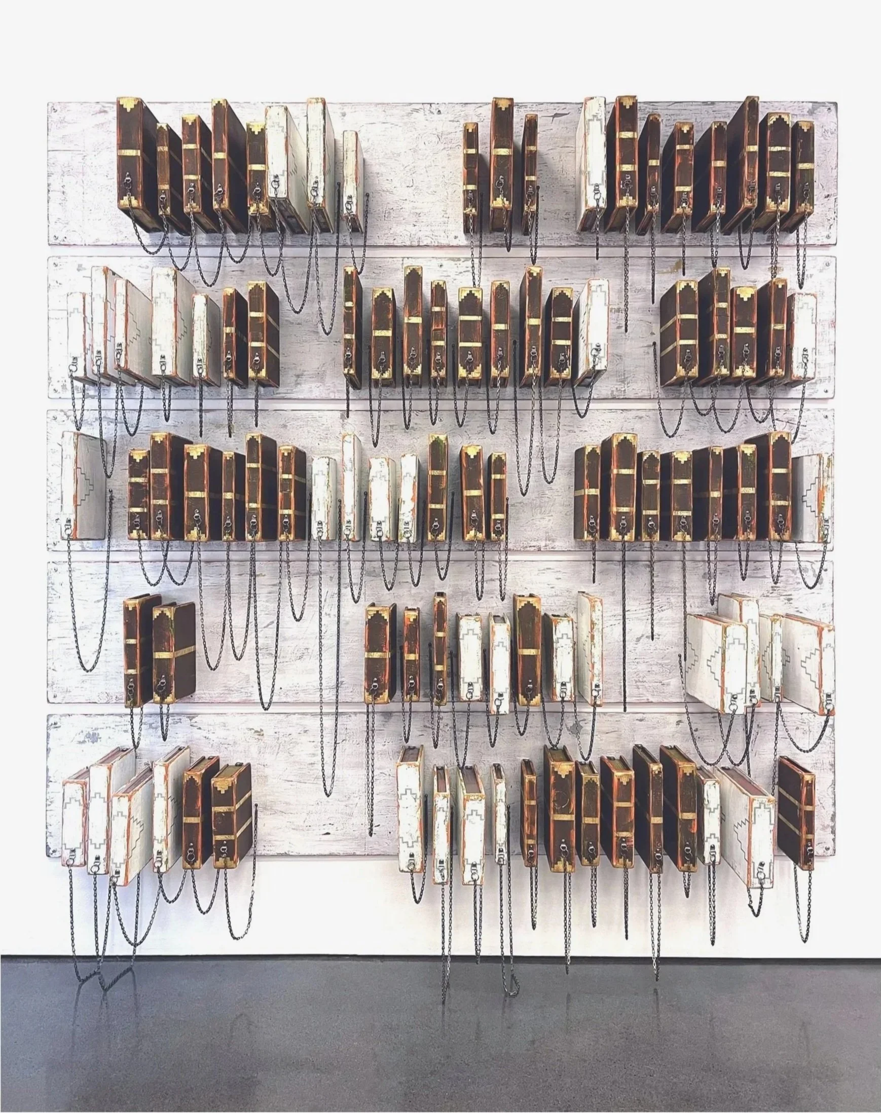 Work data, wood, gold and silver leaf, sisal, acrylic